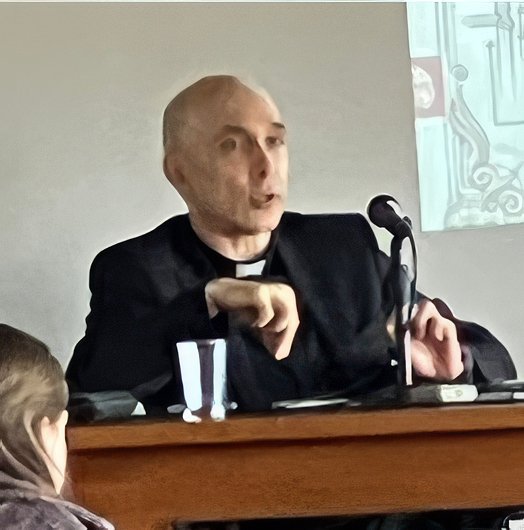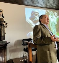 La primera conferencia corrió a cargo del Prior del convento de los Carmelitas Descalzos, Padre Tito, sobre “Santa Teresa y San Juan de la Cruz en la ciudad de Toledo”. Destacó que la Santa tuvo mucha relación con Toledo pues, entre otras cosas, empezó a escribir sobre su vida en la casa de Dª Luisa de la Cerda. Era una mujer muy inquieta y fue mística universalmente reconocida. Entre otros libros escribió El libro de la vida, Camino de perfección, Meditaciones sobre los Cantares, Moradas del castillo interior, Cuentas de conciencia, El libro de las Fundaciones, entre otros. Sobre San Juan de la Cruz expuso que estuvo preso en Toledo, y que durante muchos años el propio convento de los Carmelitas reprodujo la celda donde podía haber estado prisionero. Colaboró con la Santa en la reforma del Carmelo que llegaron a tener en Toledo hasta 7 asentamientos.