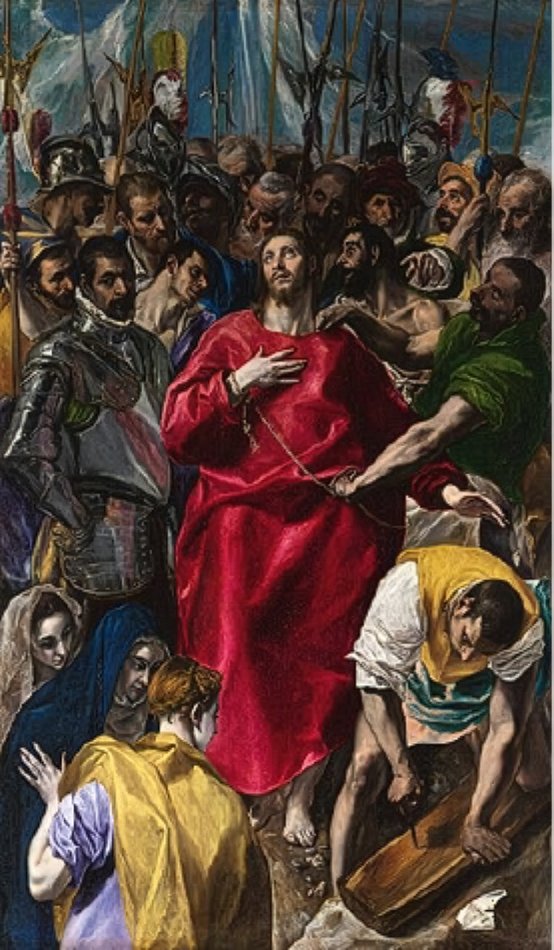 El expolio es un episodio de la Pasión en el que Jesús es despojado de sus ropas. Esta temática no era frecuente en el arte occidental de aquella época, pero parecía apropiada para una sacristía, donde los sacerdotes se cambiaban de vestimentas. Aunque no está propiamente relatado en los evangelios canónicos, sí lo está en uno de los apócrifos: el evangelio de Nicodemo, pero seguramente el Greco se inspiró en un texto de san Buenaventura.